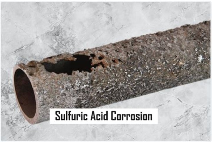 Acid corrosion of metals is caused by electrochemical processes. Calcium carbonate acts as the negative pole, the corrosive environment (sulfur dioxide, air and water vapor) acts as the positive one, and the degradation product (gypsum) as the electrode.