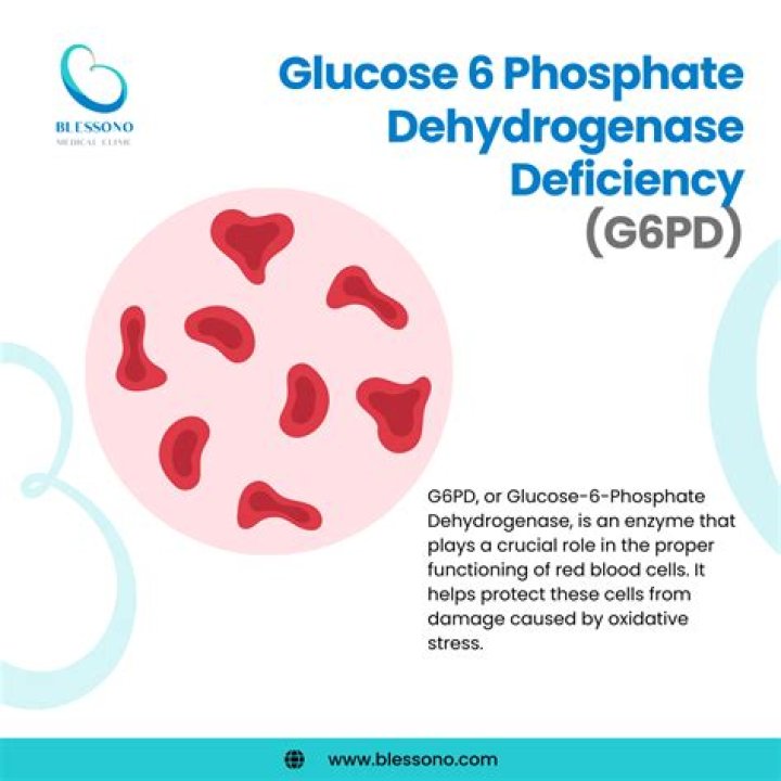 Glucose-6-phosphate dehydrogenase (G6PD) deficiency is a condition in which red blood cells break down when the body is exposed to certain drugs or the stress of infection. It is hereditary, which means it is passed down in families.